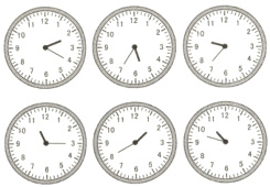 8. 根据下面的时间,在对应位置画出时针和分针。