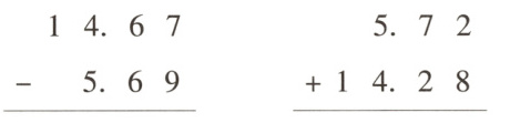 解析:计算小数相加减,相同数位对齐,从末位开始计算,注意哪一位上的数相加满十需要向前一位进1,哪一位上的数不够减,要从前一位借1。