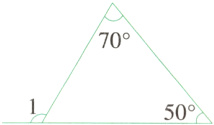 解析:如下图,∠2=180°-70°-50°,∠1=180°-∠2。