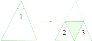 6. 如下图,将左图折成右图,如果∠1=50°,那么∠2+∠3是多少度?