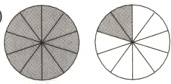 (2)题中,圆被平均分成10份,一份是0.1,0.3是3个0.1,4个0.3是12个0.1,涂12份,是1.2;第