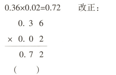 解析:错在乘得的积的小数位数不够时,没有在前面用0补足位数,再点小数点。