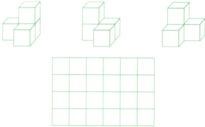 9. 下面三个立体图形,从( )面(填“正”“上”或“左”)看到的形状一样,将看到的画在下面的方格图里。