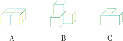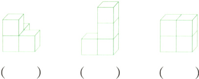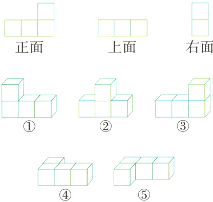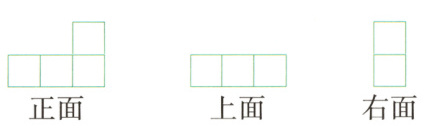 解析:根据正面看到的形状是 可以看到搭了2层,第2层的正方体在右侧,根据上面看到的形状是可以看到搭了2排,第2排的正方体在右侧,根据右面看到的形状可知道第2层的正方体在第2排,据此判断出立体图形的形状和所用正方体的个数即可。