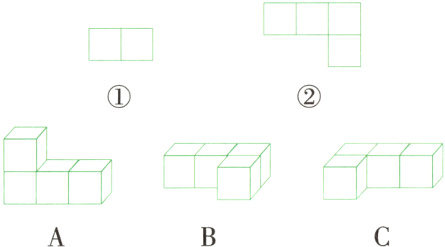 4. 一个立体图形,从左面看如图①,从上面看如图②。下面三个立体图形中,符合要求的是( )。