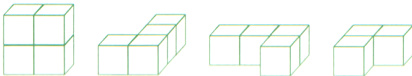 解析:图中四个立体图形从上面看分别能看到2个、4个、4个、3个小正方形,形状分别是