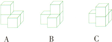 观察上面三个立体图形:①号立体图形从上面看到( )个小正方形,②号立体图形从左面看到( )个小正方形,③号立体图形从正面看到( )个小正方形。