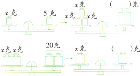 15 10 解析:观察图可知天平左右两边同时放上或拿掉同样倍数质量的砝码,天平仍然平衡,也就是等式的性质(二)。