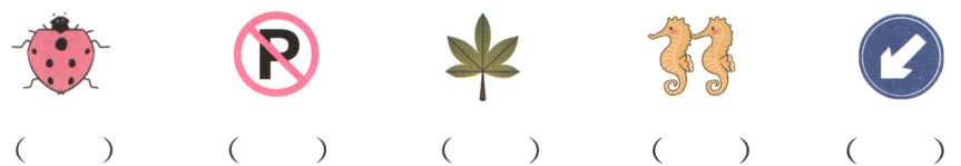 1. 下面哪些图案是轴对称的?在轴对称图形下面括号里画“√”。