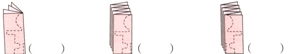 4(难点1)下面哪种画法沿虚线将图案剪下,不会剪出半个人形图案?请在不会剪出的括号里画“√”。