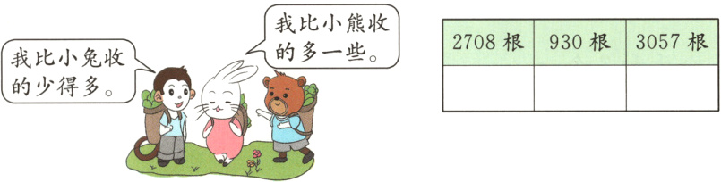 4. (易错题)他们各自收了多少玉米?将动物名称填在下表中。