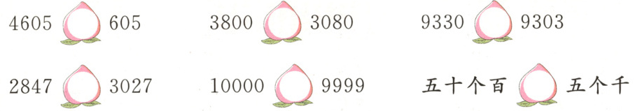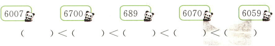 【思路分析】由图中信息可知④大于②和③,②又大于③和①,③又大于①。由此可以得出这四个数的大小关系为:④>②>③>①。给出的四个数的大小关系为6423>5000>1245>1042,由此可以得出①=1042,②=5000,③=1245,④=6423。【规范解答】①=1042 ②=5000 ③=1245 ④=6423