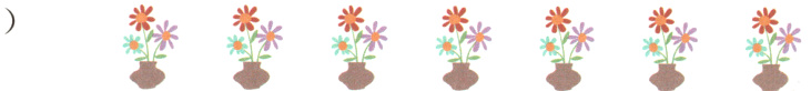 一共有( )朵花,一个花瓶中插( )朵,需要( )个花瓶。