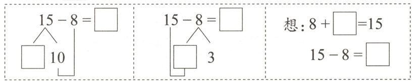 $\square$ + 6 = 14 14 - $\square$ = 5 12 - $\square$ = 7
