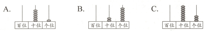 2. 一个两位数,个位上的数字比十位上的数字大5,这个两位数在计数器上表示可能是( )。