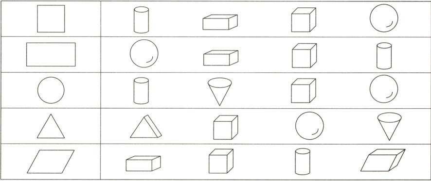 四、用右边的哪些物体能画出左边的图形?圈出来。(10分)
