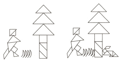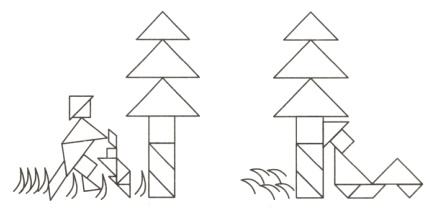 八、下面是小佳同学用七巧板拼成的成语故事,请你给大家讲一讲这个故事,并在图中各图案中标出所用的各块板的序号。(8分)