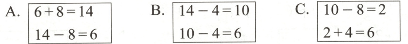 4. 计算14 - 8时,和 下图表示的思考过程相同的是( )。