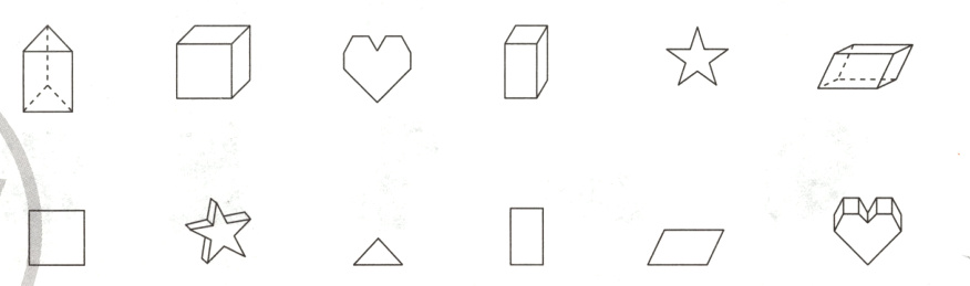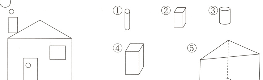 六、下左图中的屋顶是用( )号图形描的,烟囱是用( )号图形描的,门是用( )号图形描的,窗户是用( )号图形描的。(8分)