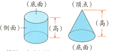 (3)圆锥有( )个顶点,底面是一个( ),侧面是一个( )面。从圆锥的顶点到底面圆心的距离叫作圆锥的( )。