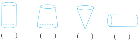 1. 下面哪些是圆柱?哪些是圆锥?是圆柱的在( )里画“〇”,是圆锥的在( )里画“△”。