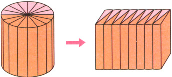 8. 如图,把一个圆柱的底面分成若干等份,再拼成一个近似的长方体,量得这个长方体的长是15.7厘米,高是10厘米,圆柱的体积是( )立方厘米。这个长方体的表面积比圆柱增加了( )平方厘米。
