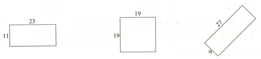 11×23 = 253(平方厘米) 19×19 = 361(平方厘米) 9×27 = 243(平方厘米)