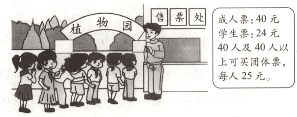 5. 马老师和李老师带39位同学去植物园,怎样买门票划算?最少花了多少钱? (5分)