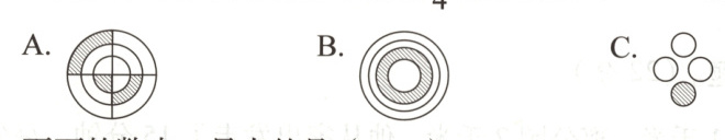 5. 下面图形中,阴影部分不能用$\frac{1}{4}$表示的是( )。