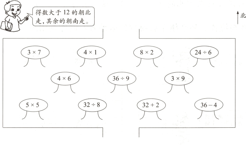 (1)南 东 (2)北 南(3)西 西 (4)公园 水果店(5)东南 东北