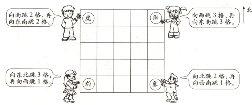 四、游戏与操作,每个棋子各跳到什么地方?请你画出来。(16分)