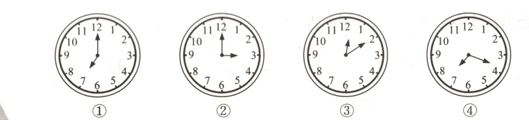 七、下面钟面上的指针形成的较小角中,( )最大,( )最小。(填序号)(6分)
