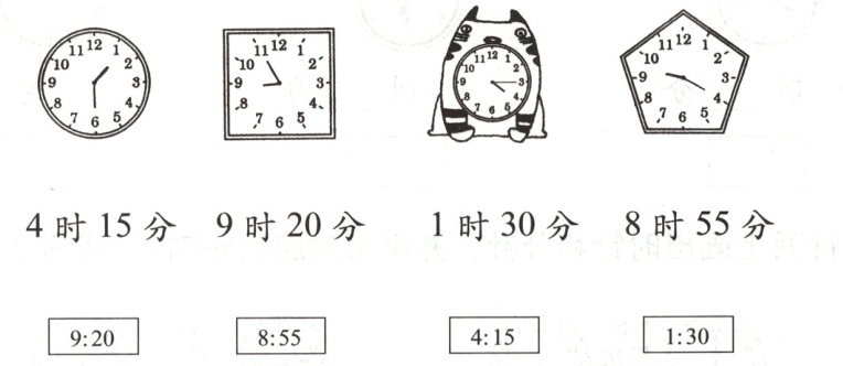 4. 时针指在5和6之间,分针指向9,现在的时刻是( )。