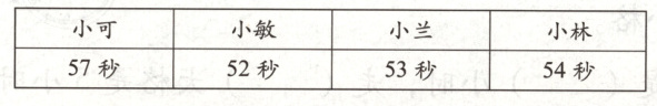 (1)小敏答得最快,小可答得最慢。(2)小敏第一名,小兰第二名,小林第三名,小可第四名。