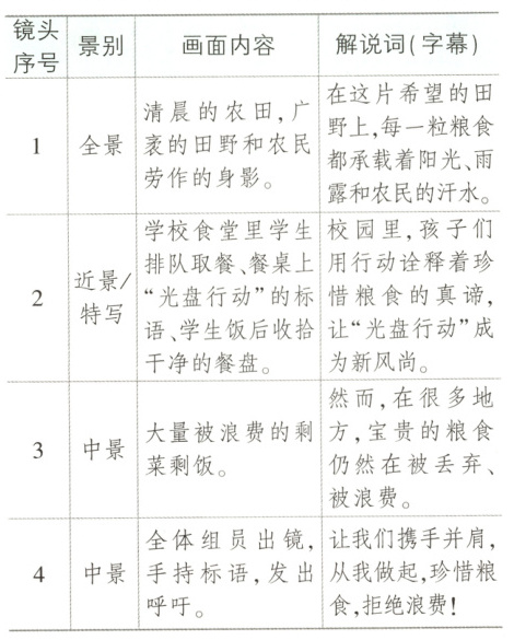 宣传短片《珍惜粮食,从我做起》脚本