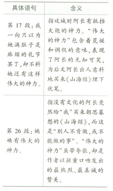 ◎【品析语句含义】“伟大的神力”在文中两次出现。联系上下文,说说其含义的不同。(P129“思考·探究·积累三”)