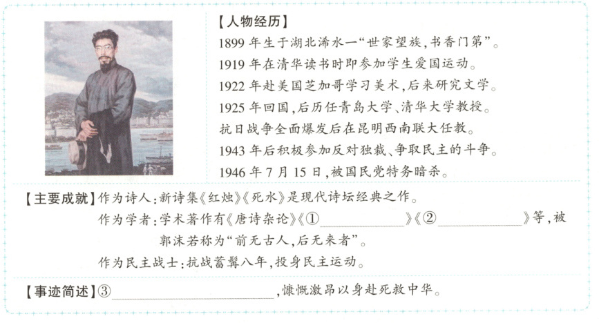 班级准备征集“致敬闻一多先生”主题手抄报,请你根据课文内容完成手抄报的策划工作。
