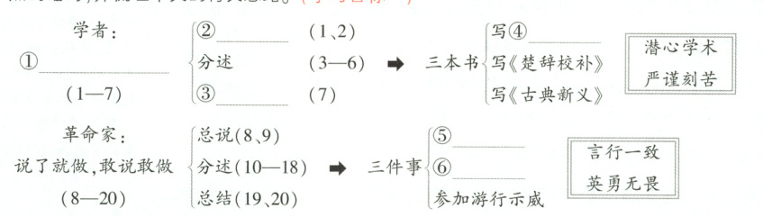 [参考答案] ①做了再说,做了不说 ②总说 ③总结 ④《唐诗杂论》 ⑤起稿政治传单 ⑥群众大会演说