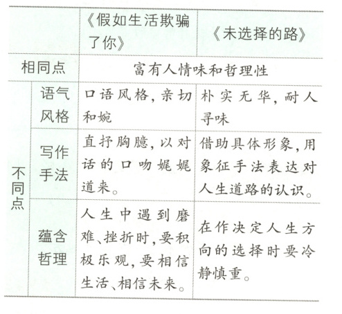 2.比较《假如生活欺骗了你》与《未选择的路》,找出它们的异同。