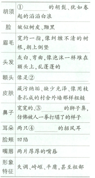 把握外貌特征 阅读第1、2 段,找出描绘托尔斯泰外貌的语句,完成下面的填空。