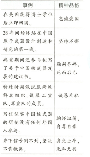 ①邓稼先身上鲜明地体现着中华传统文化中的优秀因子,诸如克己奉公、中正平和、讷于言而敏于行等;正是中华传统文化中的敦厚儒雅养成了邓稼先独特的性格和气质。这种根植于中华传统文化的性格气质是邓稼先能率领众人作出非同一般的历史贡献的重要原因。②邓稼先忠厚平实、真诚坦白,没有私心,为祖国、为人民无私奉献自己的一切,践行着中国共产党“全心全意为人民服务”的宗旨,因此他是理想的党员。