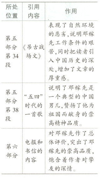 ◎【分析传记中引用的作用】作者在写作这篇人物传记时,采用了大量的引文,请用“【】”标出并分析其作用。(P16“思考·探究·积累二”)