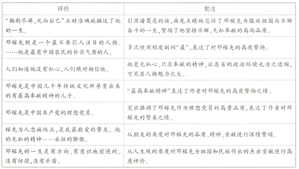 ◎【分析人物评价】用“ ”在文中画出作者对邓稼先的评论性语言,并作好批注。精当语言评价人物