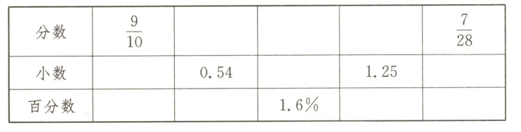 0.9 90% $\frac{27}{50}$ 54% $\frac{2}{125}$ 0.016 $\frac{5}{4}$ 125% 0.25 25%