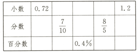 $\frac{18}{25}$ 72% 0.7 70% 0.004 $\frac{1}{250}$ 1.6 160% $\frac{6}{5}$ 120%