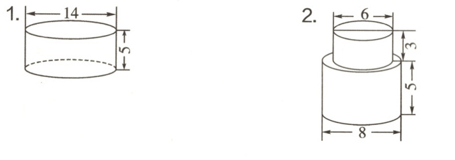 2. $3.14×(6÷2)^{2}×3 + 3.14×(8÷2)^{2}×5 = 335.98(cm^{3})$