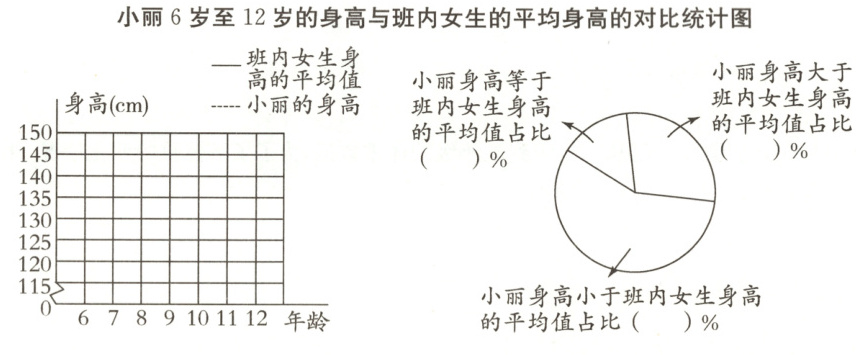 下面是小丽$6$岁至$12$岁的身高与班内女生身高的平均值的对比统计表。