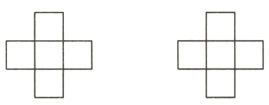 26. 手工课上,老师给每个小组发了一张如图所示的硬纸板,每个小方块均为正方形,要求每组把这张硬纸板分成4个形状和面积都相同的图形,他们该怎样分?请画出两种不同的分割方式。(用虚线表示)(4分)