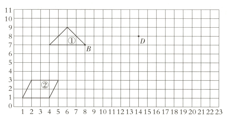 (3)若点$B$可以用数对(8,7)来表示,则点$D$的位置用数对表示是(____,____)。以点$D$为圆心画一个半径为2厘米的圆。