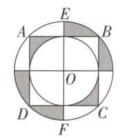 24. 已知正方形$ABCD$的面积为16平方厘米,求右图中阴影部分的面积。(4分)